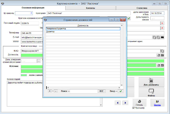 Для заполнения из справочников полей, выделенных соответствующим цветом, дважды щелкните (DblClk) по тому полю, которое требуется заполнить.