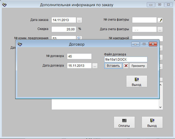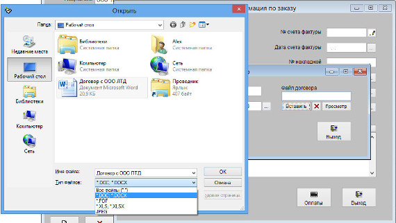 Выбранный файл будет добавлен в программу (его в дальнейшем можно отправить клиенту на e-mail вместе со счетом, установив соответствующую галочку в сообщении).