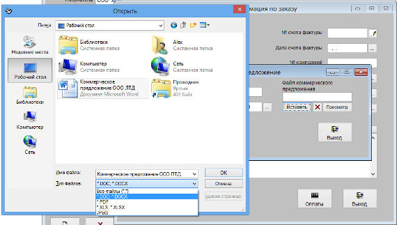 Выбранный файл будет добавлен в программу (его в дальнейшем можно отправить клиенту на e-mail вместе со счетом, установив соответствующую галочку в сообщении).