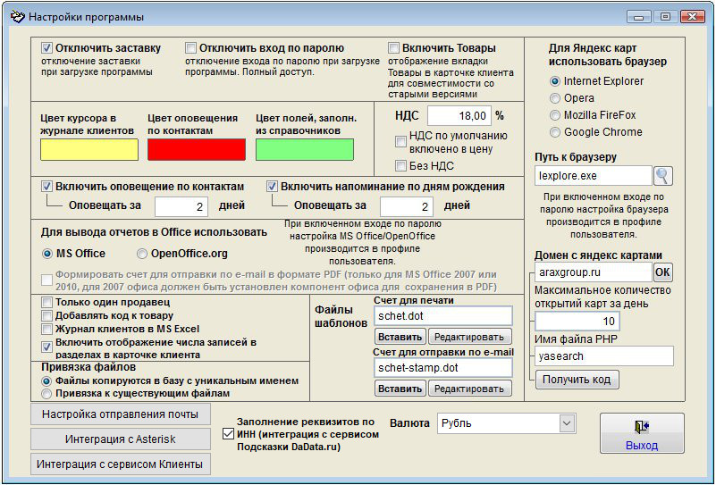 Выберите пункт меню "Сервис-Настройки программы", откроется окно настроек программы.