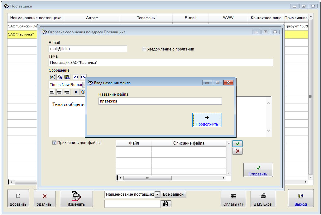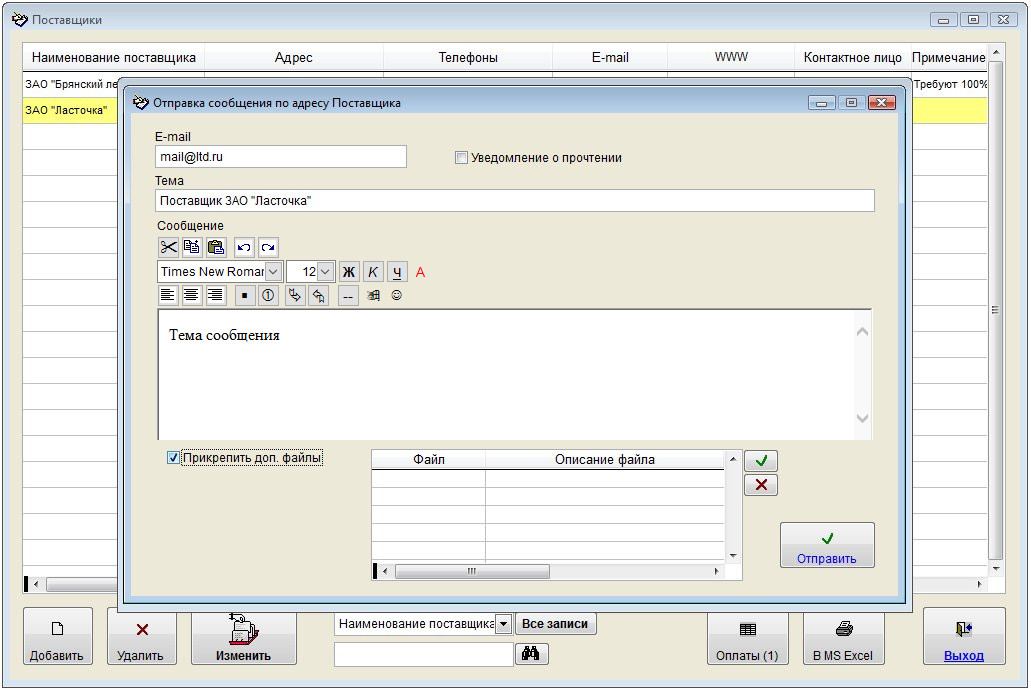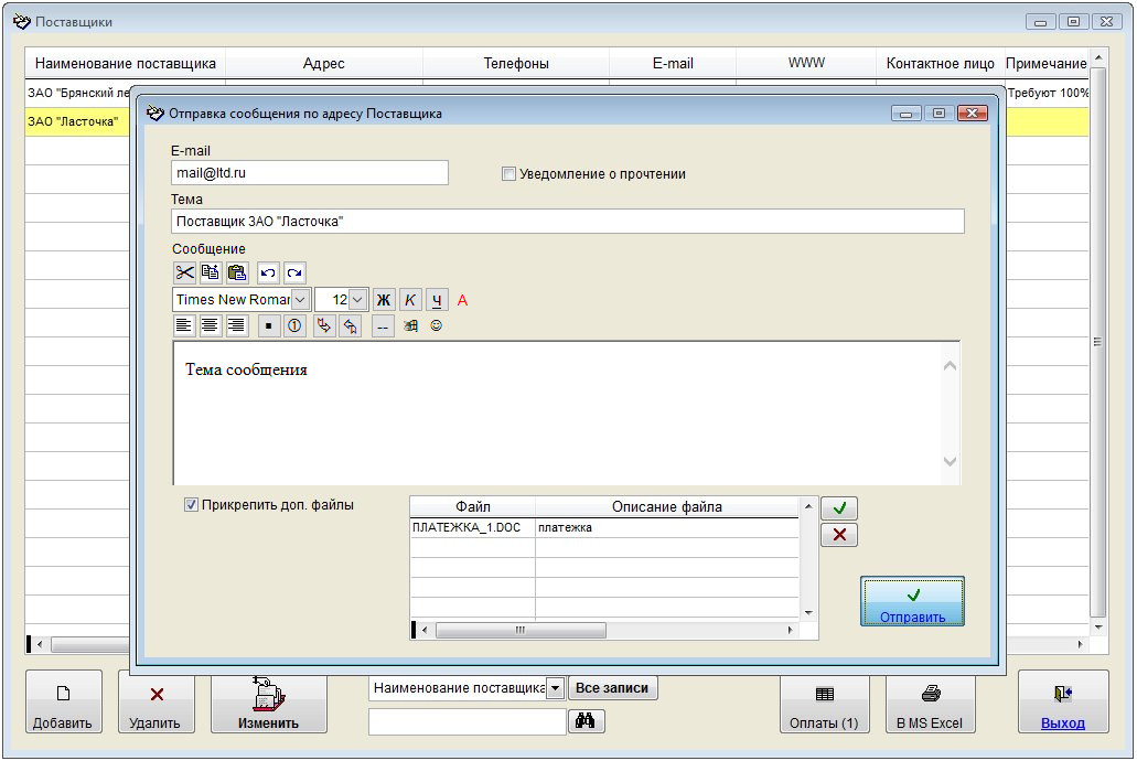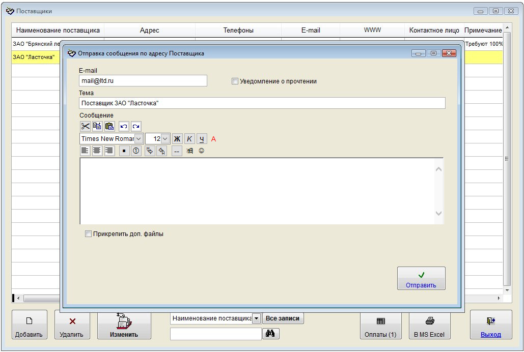 Как отправить письмо на e-mail поставщика, либо сотрудникам поставщика