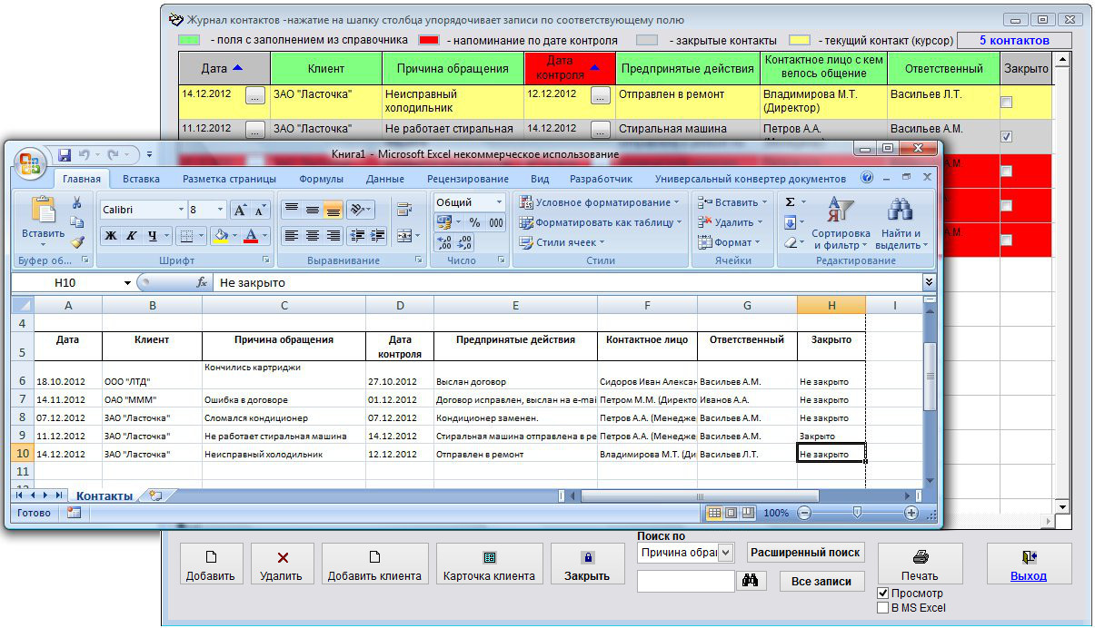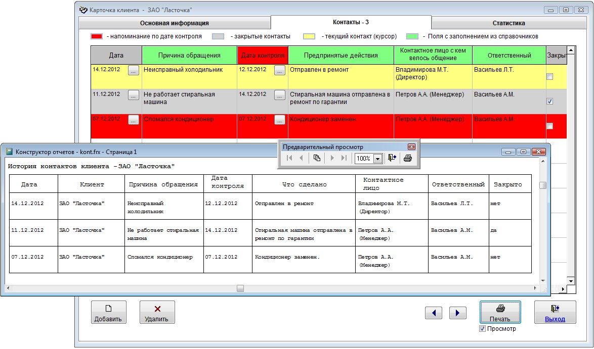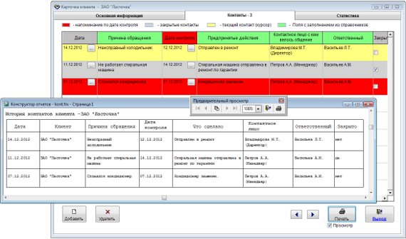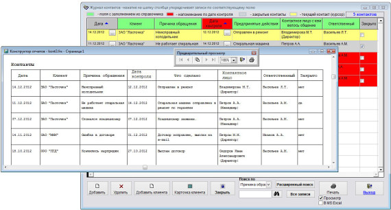 Также список контактов можно распечатать в общем журнале контактов с клиентами.