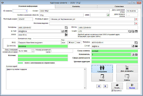 В программе есть напоминание о днях рождения сотрудников клиентов.