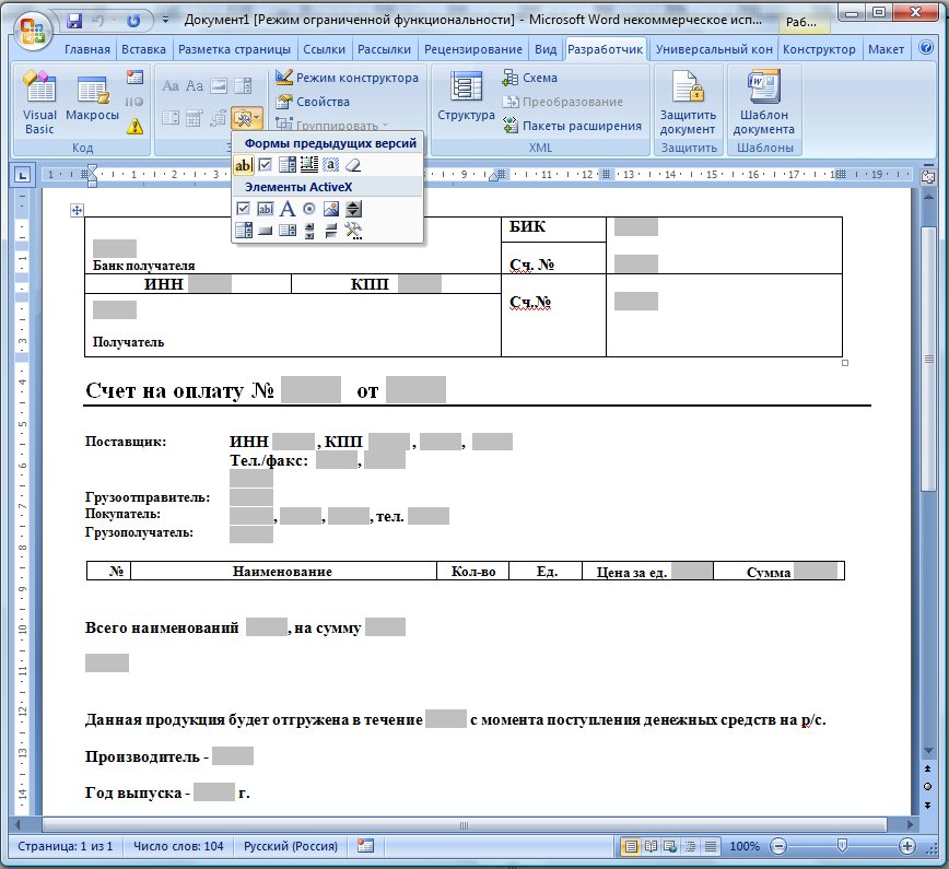 В Microsoft Word 2007 и 2010 нужно будет включить вкладку "Разработчик".
