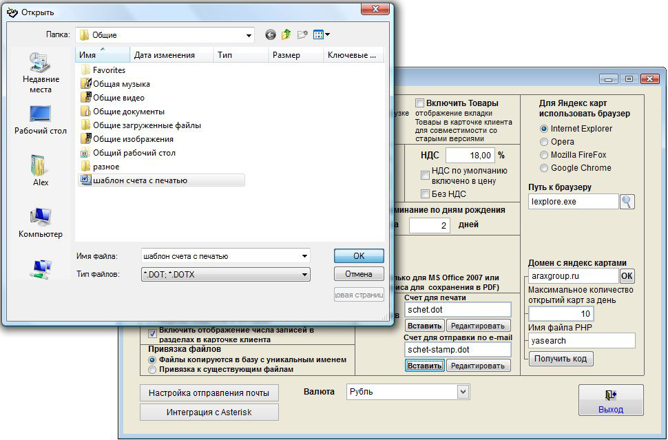 Новый шаблон будет добавлен в программу с именем schet-stamp.dot в разделе "Файлы шаблонов - Счет для отправки по e-mail" вместо старого шаблона.