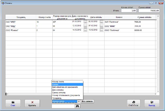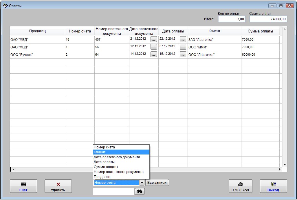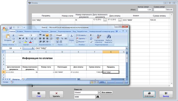 Найденные оплаты можно вывести в установленный Microsoft Excel либо при соответствующей настройке в OpenOffice Calc.