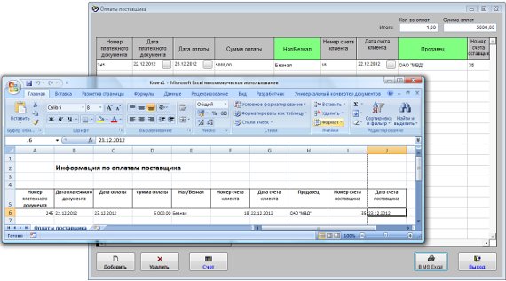 Оплаты будут выведены в установленный Microsoft Excel либо при соответствующей настройке в OpenOffice Calc.