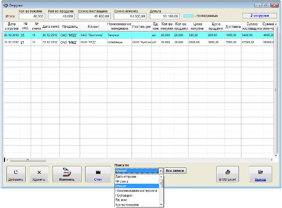 Также журнал отгрузок можно упорядочить по любому столбцу, нажав мышью на шапку соответствующего столбца.