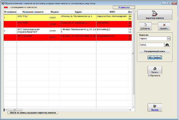В результате выполнения поиска по журналу клиентов в нем отображаются только записи, соответствующие критерию поиска.