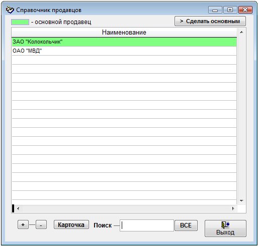 Для изменения реквизитов существующего продавца выберите нужного продавца в таблице и нажмите кнопку "Карточка".