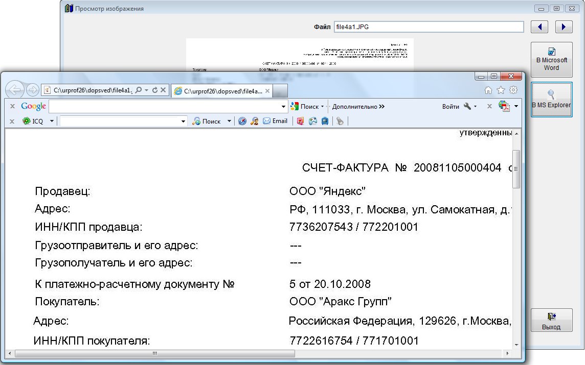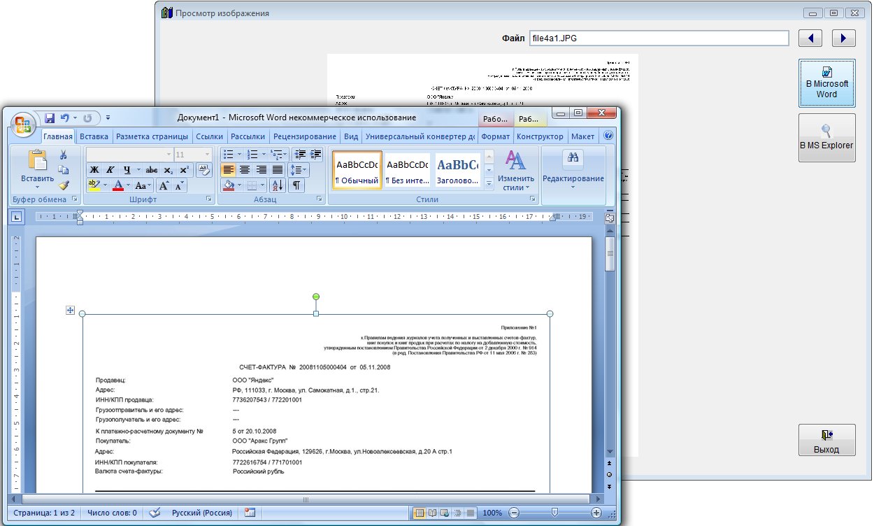 При нажатии на кнопку "В MS Explorer" изображение будет экспортировано в приложение, ассоциированное в Windows с выбранным типом файла.