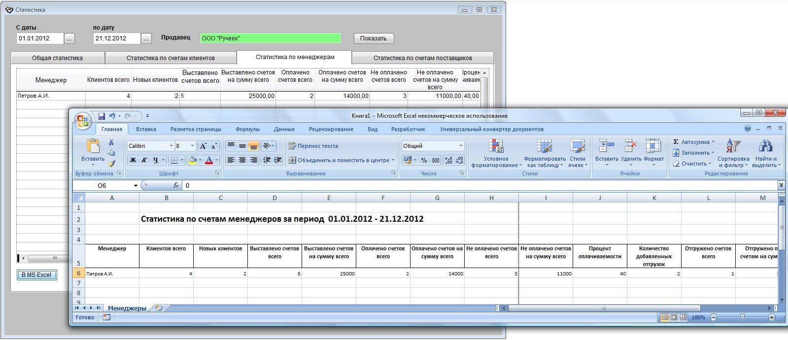 Статистика будет выведена в установленный Microsoft Excel либо при соответствующей настройке в OpenOffice Calc.