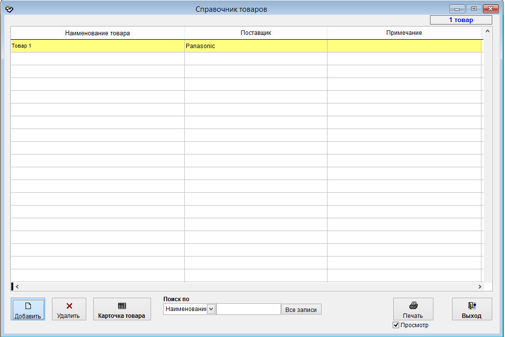 Для вызова справочника товаров выберите пункт меню "Справочник товаров"