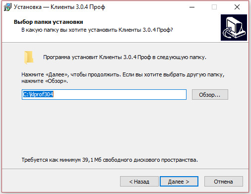 Укажите в текстовой строке папку для инсталляции программы (например C:\klprof305 ) либо выберите ранее созданную через дерево каталогов. По умолчанию для каждой новой версии программы папка своя.