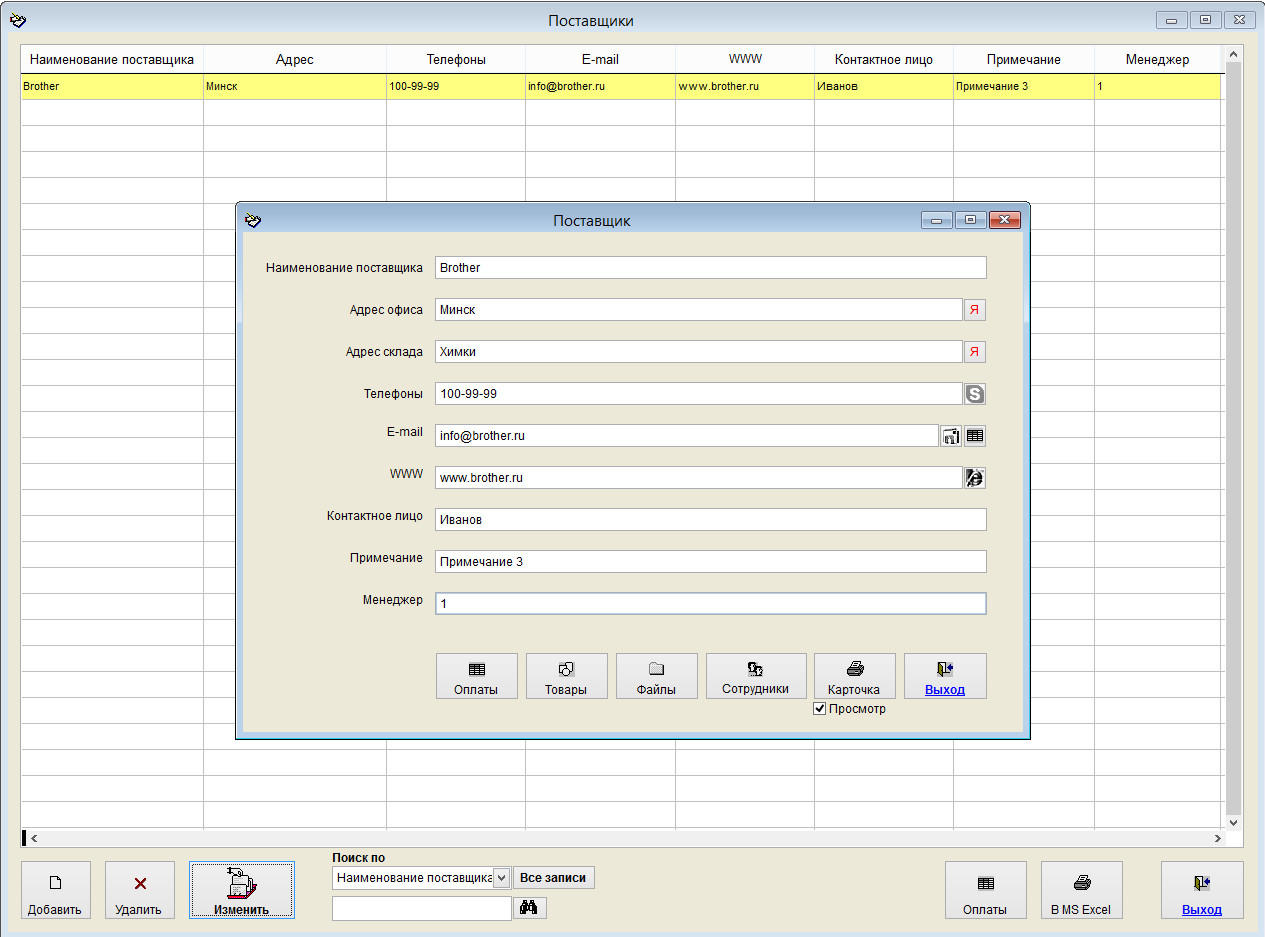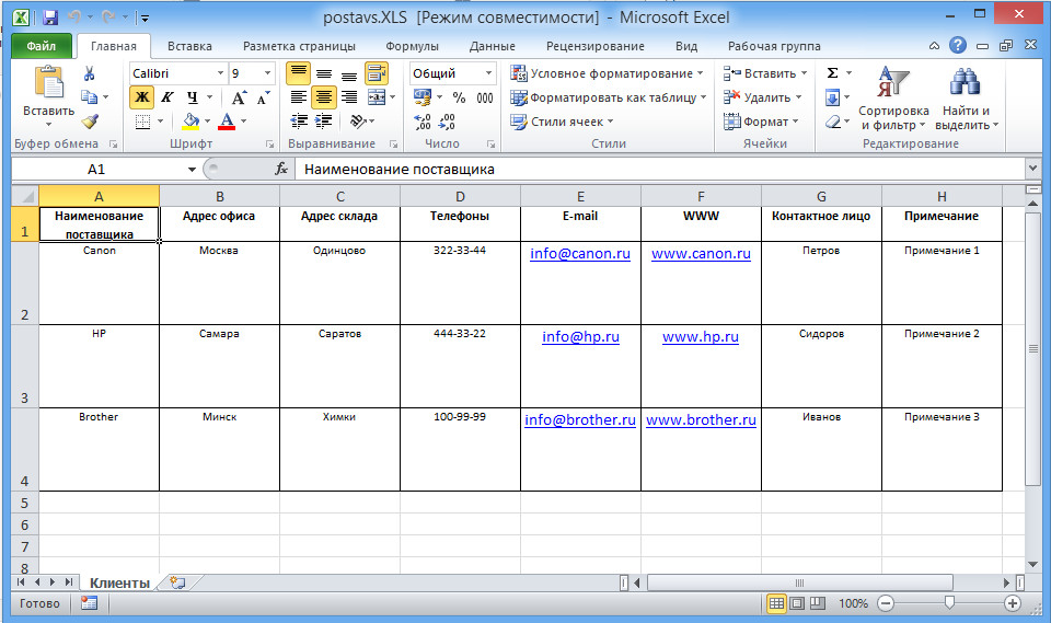 В программе "Клиенты" можно загрузить справочник поставщиков из файла формата XLS.