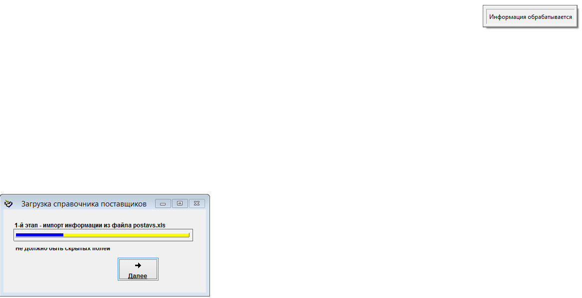 Информация загружается из файла postavs.XLS, находящегося в папке с программой, его перед загрузкой надо открыть в Excel, заполнить по столбцам с помощью копирования/вставки из Вашего файла (шапку не удалять, порядок столбцов не менять!), после чего сохранить в формате Excel 5.0/95 (данный тип файла можно выбрать в любой версии Excel).