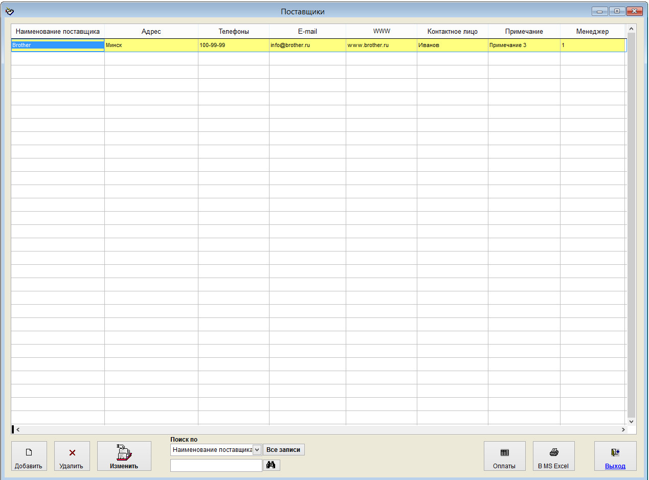 Загруженные из файла XLS поставщики отобразятся в справочнике поставщиков.