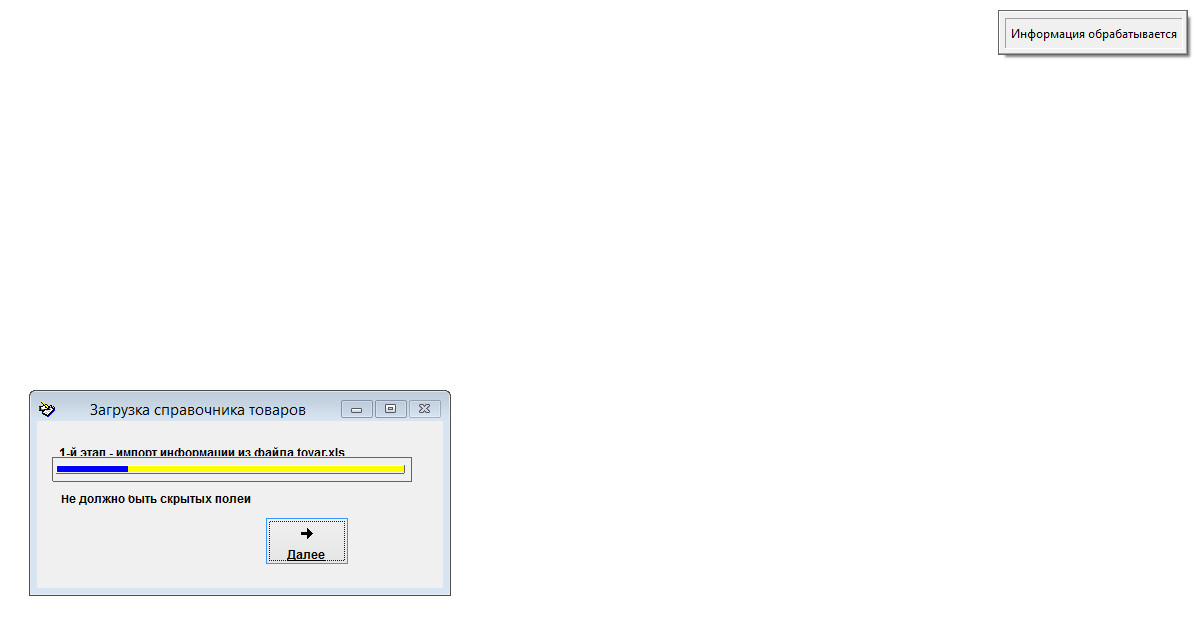 Информация загружается из файла tovar.XLS, находящегося в папке с программой, его перед загрузкой надо открыть в Excel, заполнить по столбцам с помощью копирования/вставки из Вашего файла (шапку не удалять, порядок столбцов не менять!), после чего сохранить в формате Excel 5.0/95 (данный тип файла можно выбрать в любой версии Excel).