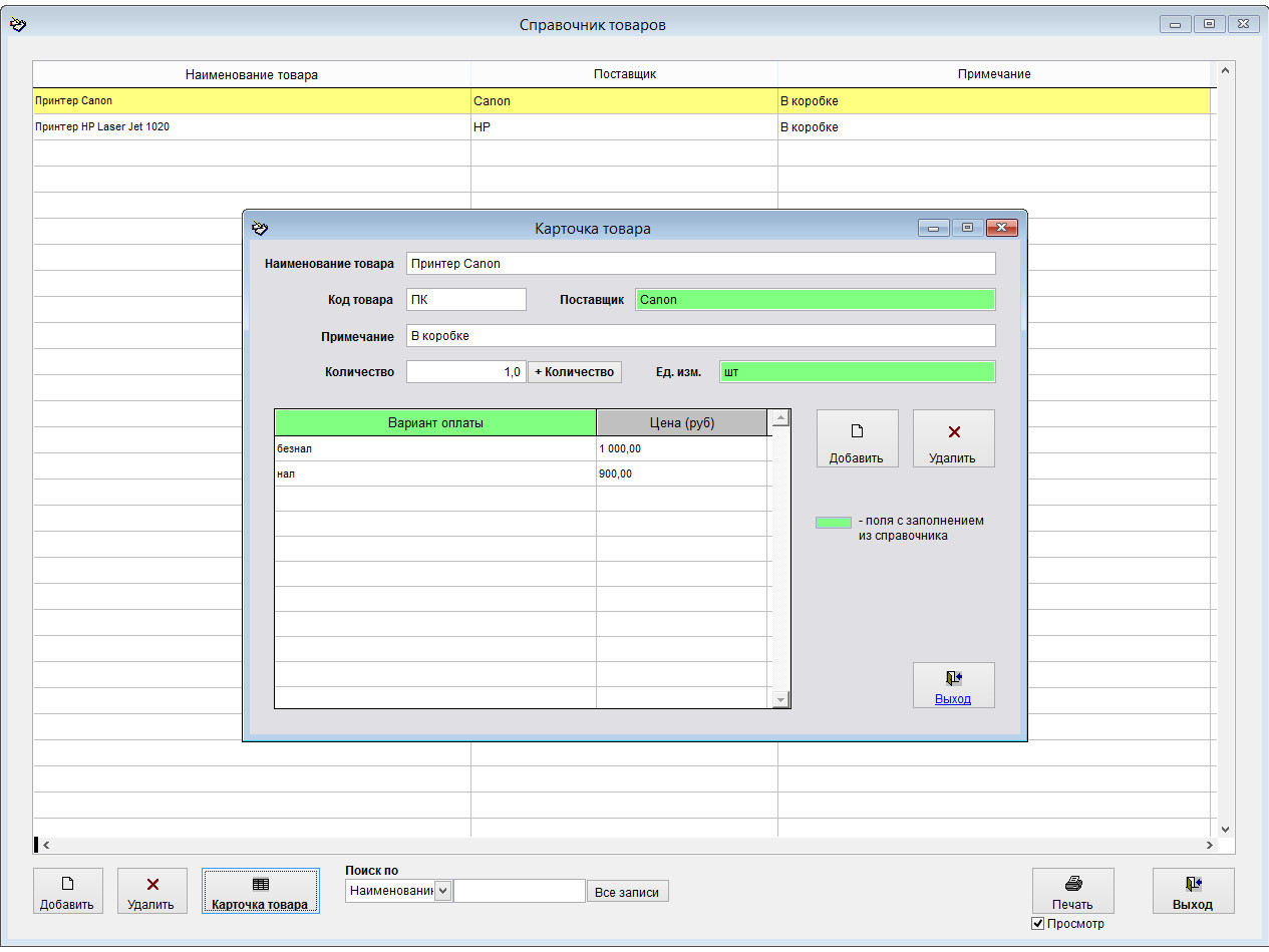 Загруженные из файла XLS товары отобразятся в справочнике товаров.