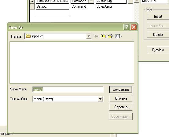 В открывшемся окне указываете имя меню (мы оставляем по умолчанию) и нажимаете кнопку "Сохранить" (Save) (рис 6.4)