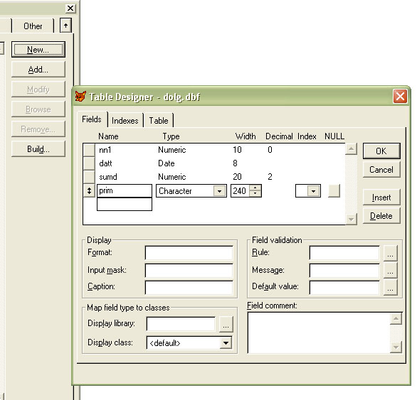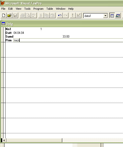 Сначала создадим еще одну таблицу с именем dolg.dbf