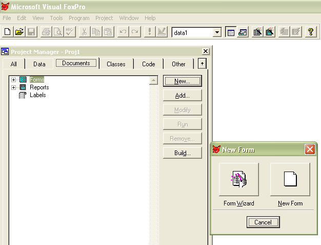 В Project Manager переходим в закладку Documents, ставим курсор на строчку Forms и нажимаем кнопку New (рис 8.24)