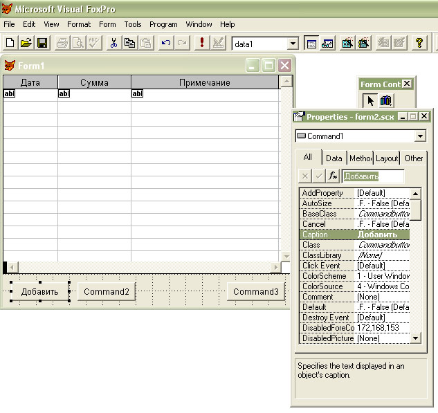 Установив курсор на строку "Caption" введем название кнопки "Добавить" (рис 8.36)
