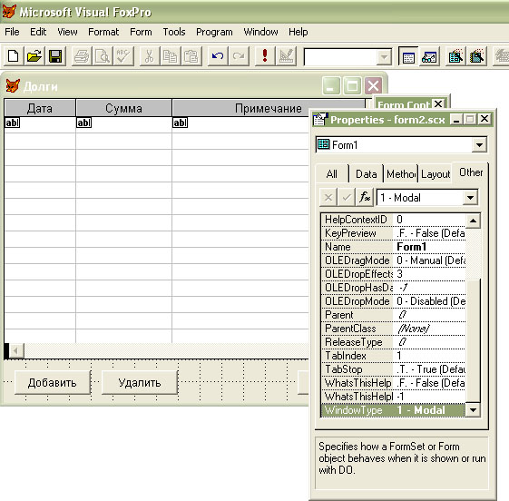 В пятой закладке Other ставим свойство WindowsType равное Modal (рис 8.37.1)