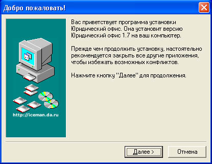 Затем появится окно с приветствием. Нажмите кнопку "Далее"