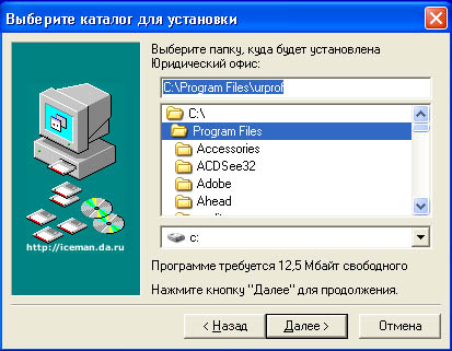 Выберите нужную папку для инсталляции через дерево каталогов, либо укажите в текстовой строке. По умолчанию для каждой программы папка своя.