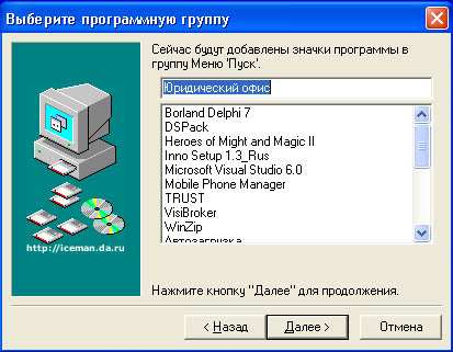 Выберите программную группу, куда программа инсталляции скопирует ярлык для программы. По умолчанию для каждой программы группа своя.