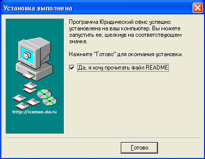 Для просмотра файла Readme.doc в папке с программой галочка должна быть установлена.