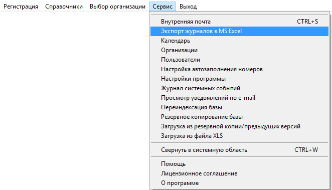 Для экспорта журнала входящих документов в Microsoft Excel, либо, при соответствующей