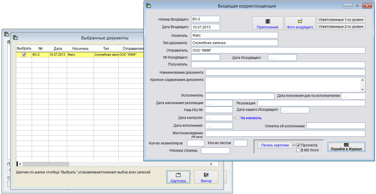 Также из данного раздела можно просмотреть карточку входящего, нажав на кнопку "Карточка".