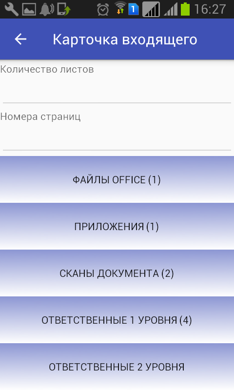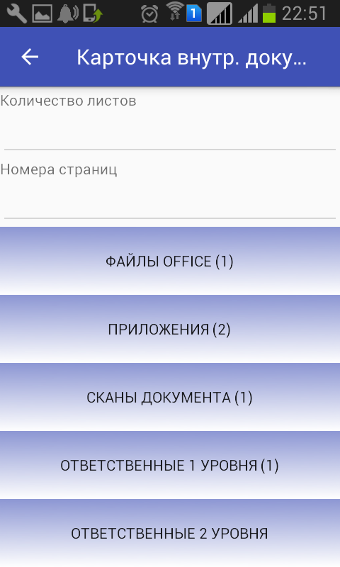 Это можно сделать, промотав карточку документа вниз и нажав на кнопку "Файлы Office" или "Сканы документа". На кнопках отображается количество записей в соответствующем разделе.