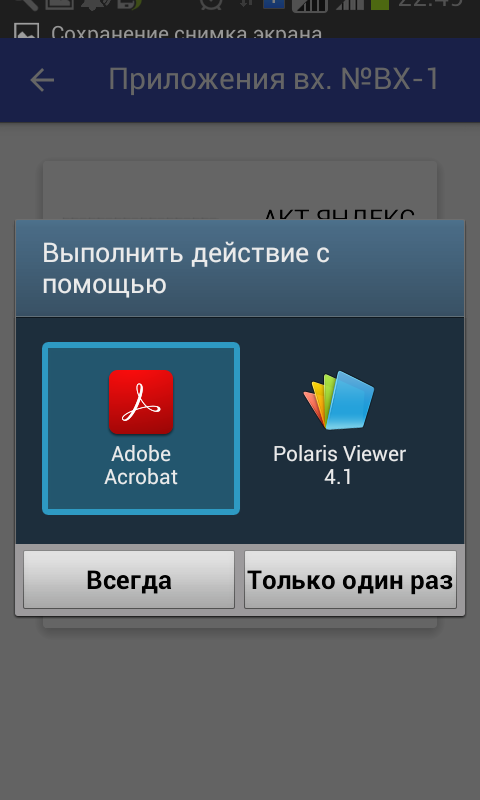 Если выбрать "Всегда", то открытие данного типа файлов другим приложением будет возможна только после сброса настроек в ОС Android.