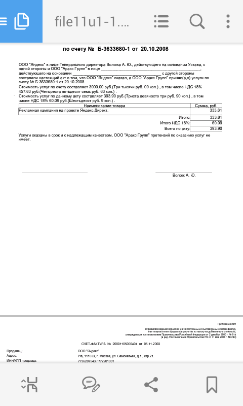 Аналогичным образом открываются файлы в разделе Приложения и Сканы документа.