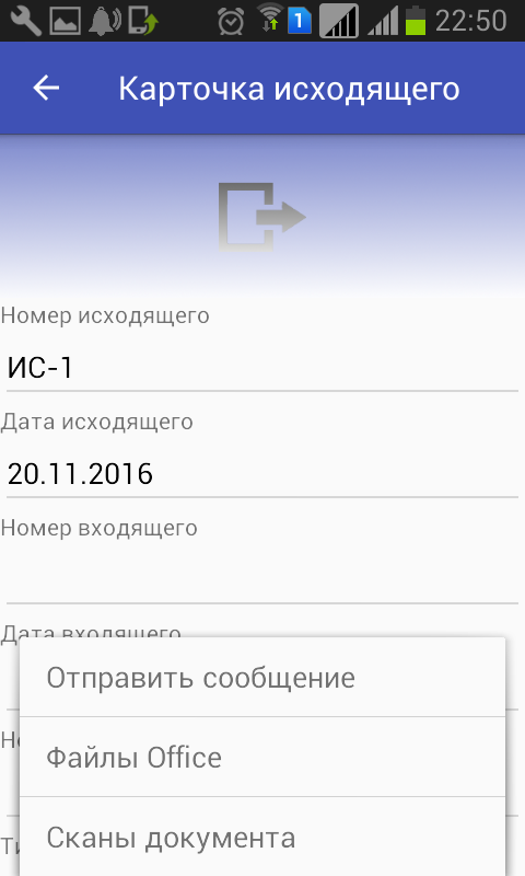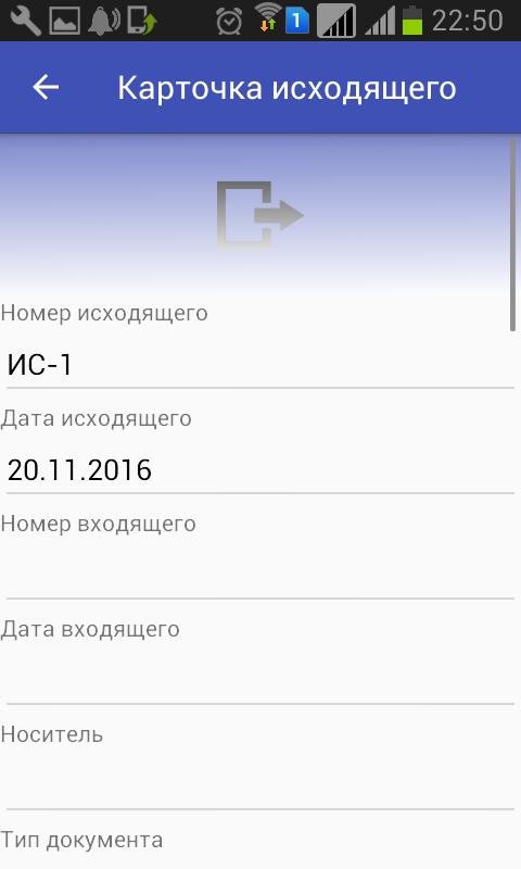 В случае уведомления по исходящему документу откроется карточка данного исходящего документа.