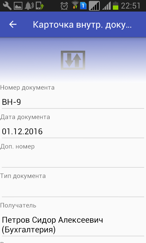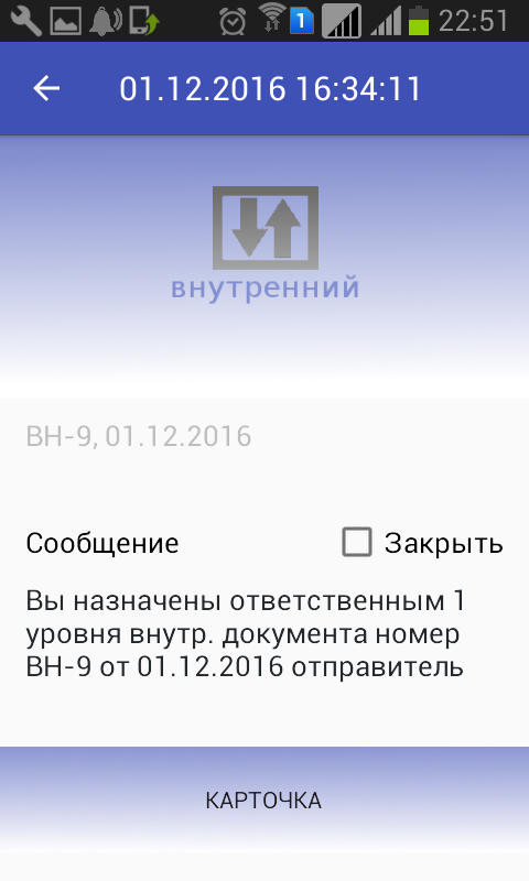 В случае уведомления по внутреннему документу откроется карточка данного внутреннего документа.