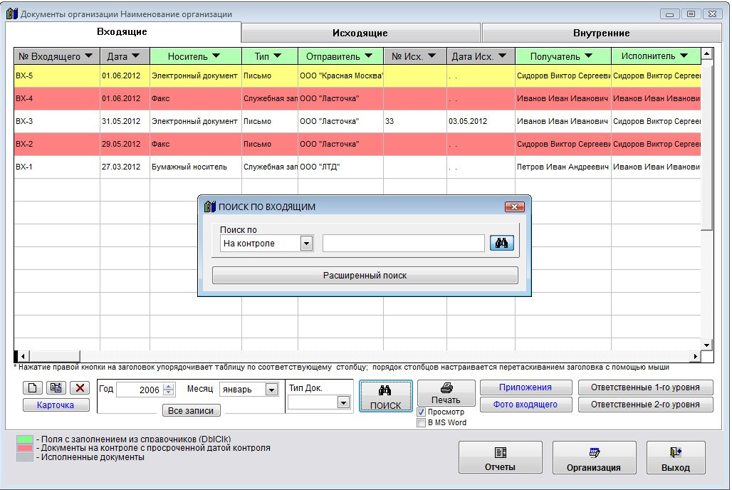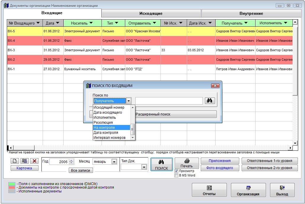 Также можно осуществить поиск по дате контроля документов.