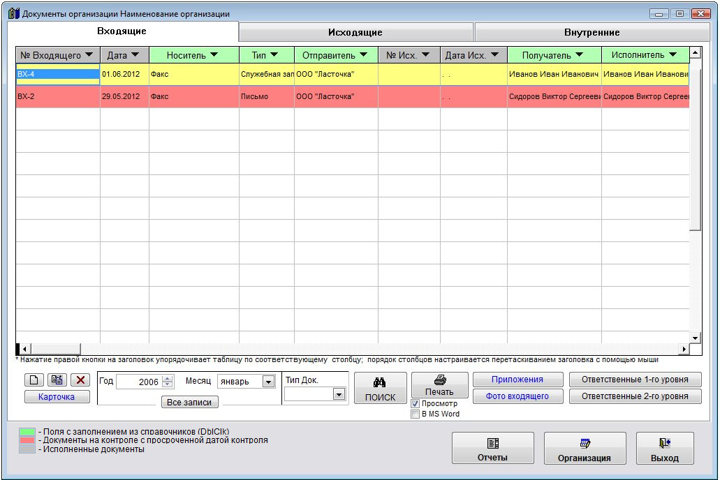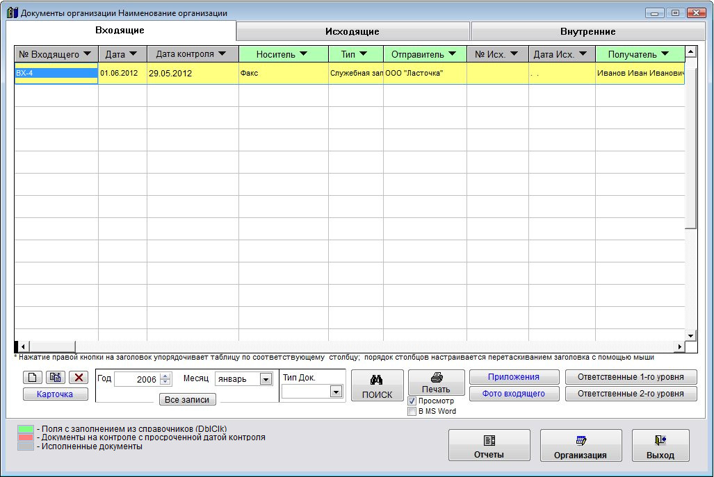 Скачать программу «Регистрация документов организации 4.9»