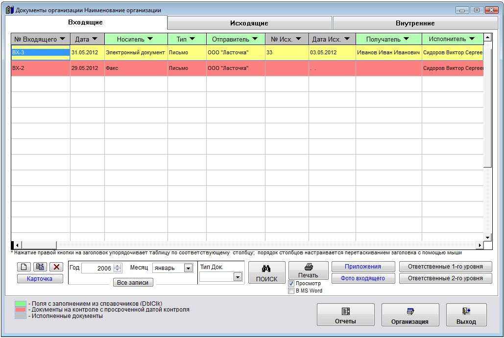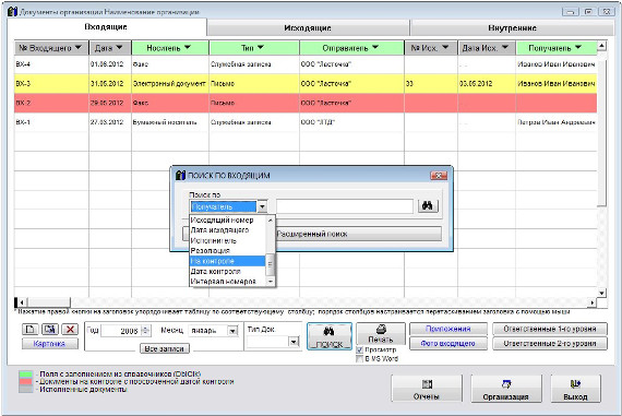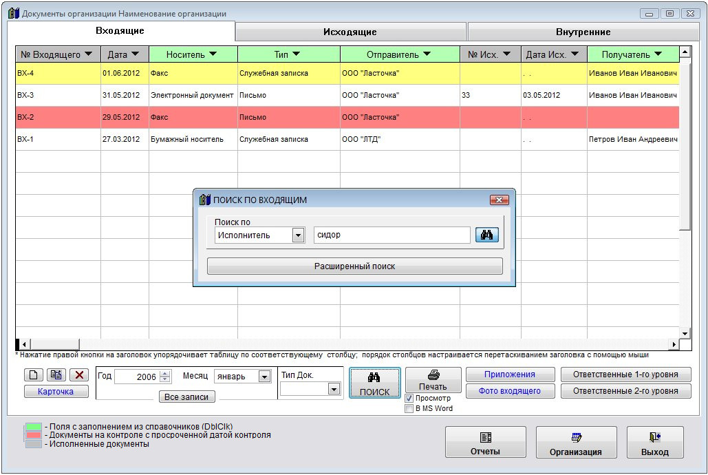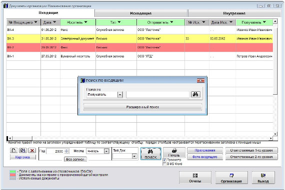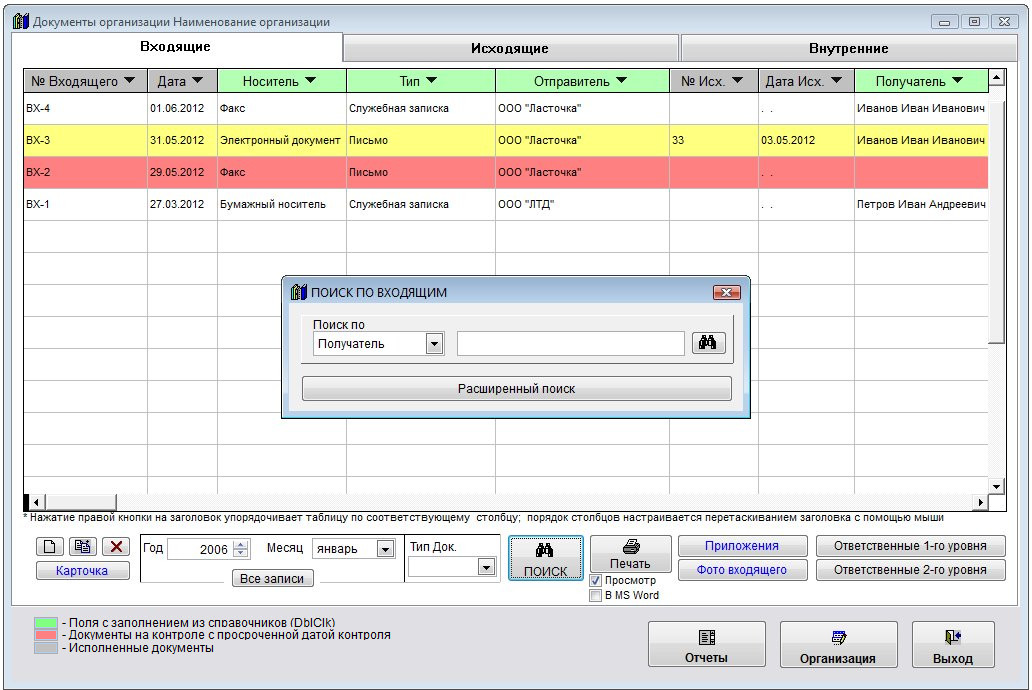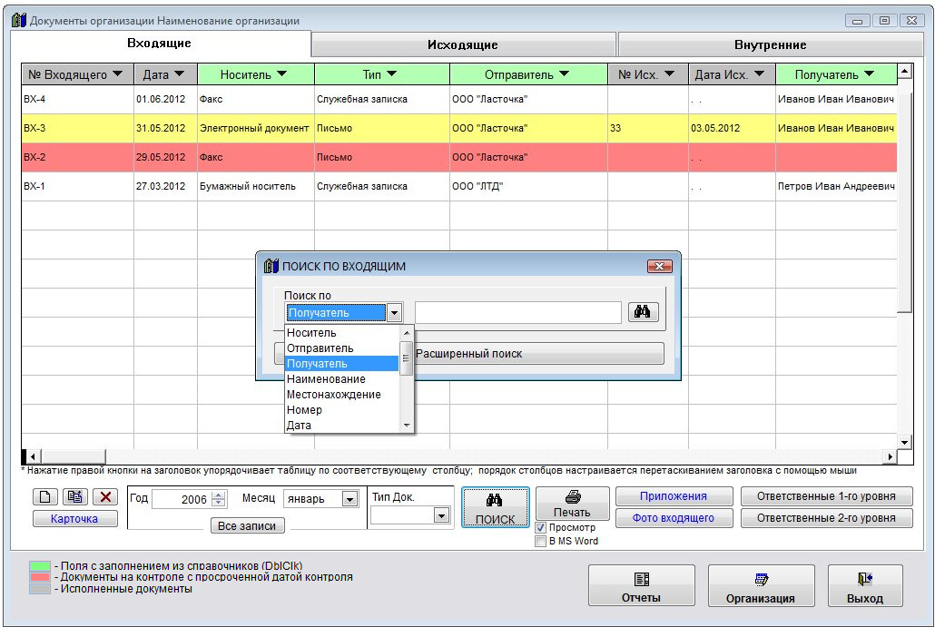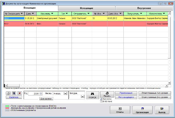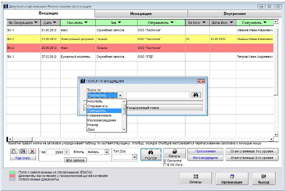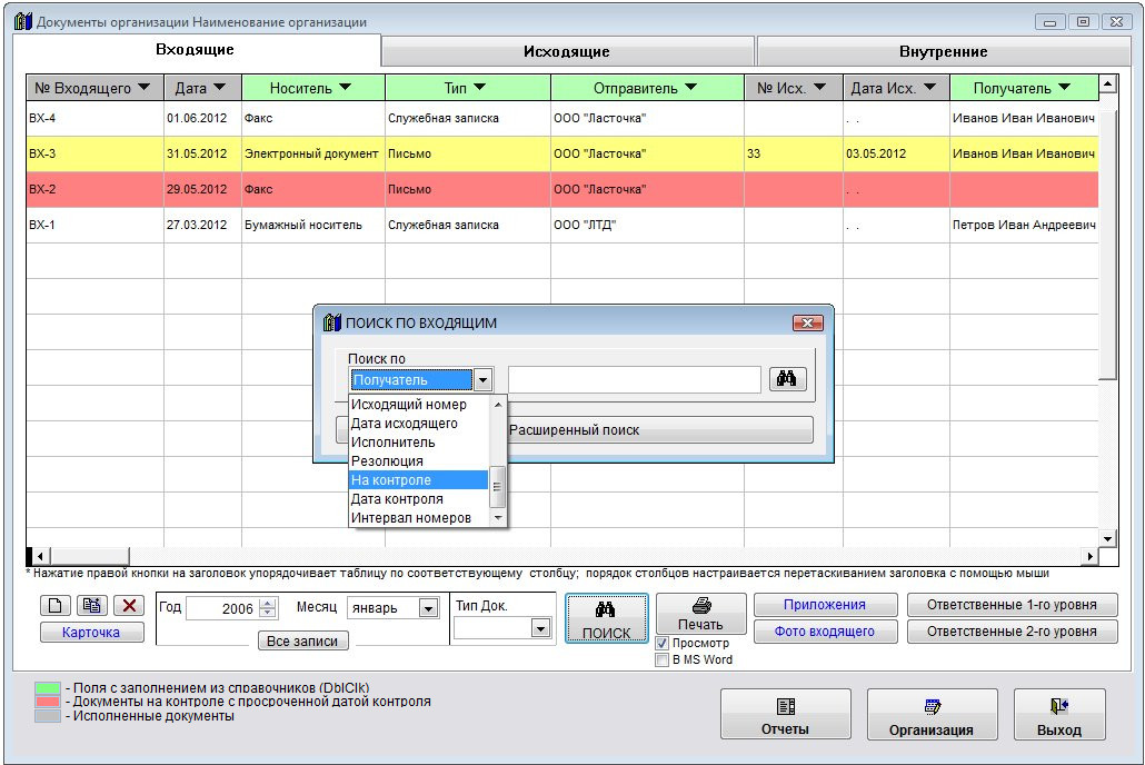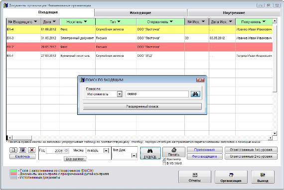 Аналогичным образом можно производить поиск в журналах входящих, исходящих и внутренних документов.