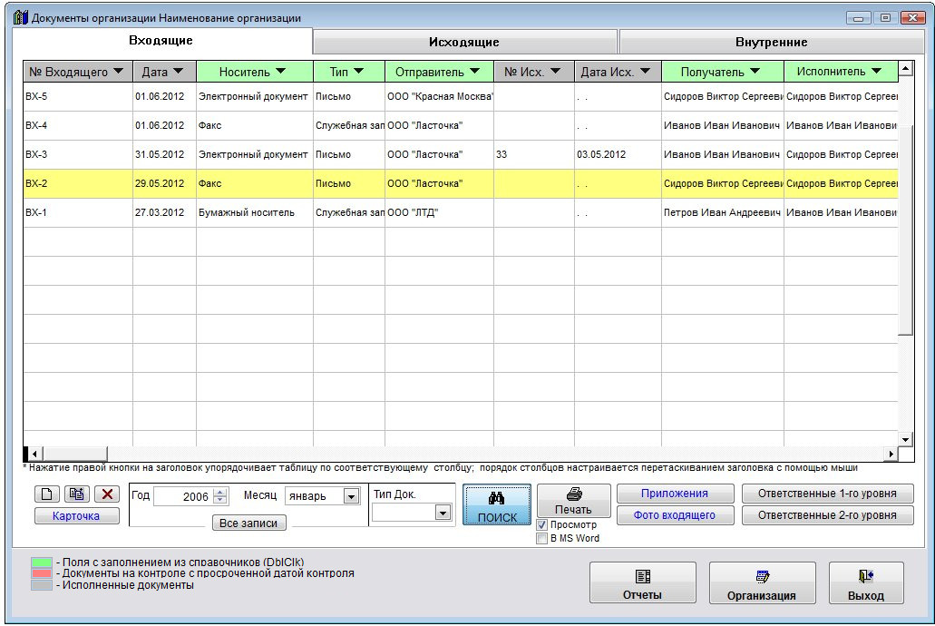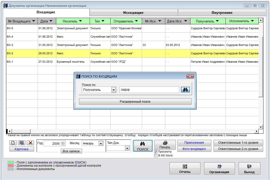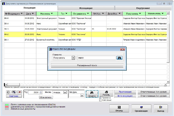 В журнале входящих отобразятся только те записи, которые соответствуют критерию поиска, т.е. где получатель содержит введенный критерий поиска.