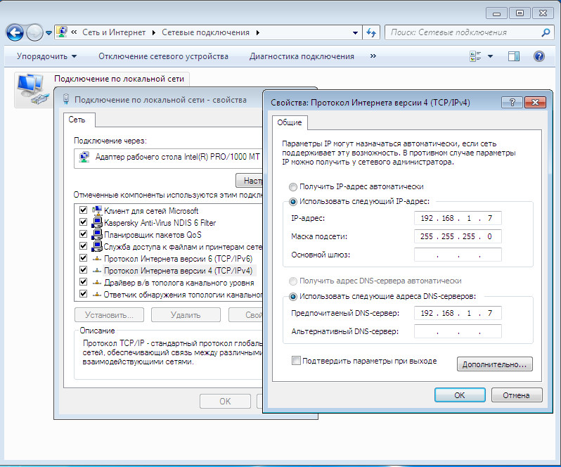 Затем нужно настроить IP для адаптера в настройках сети (если не настроен ранее).