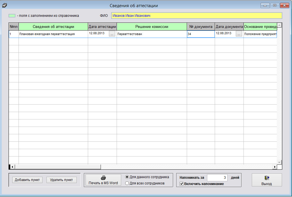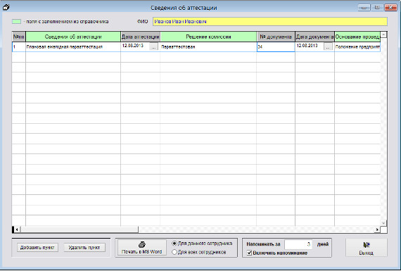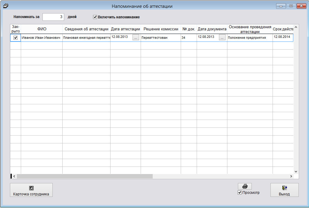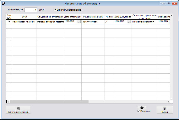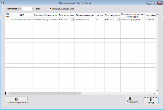В программе "Сотрудники предприятия" можно организовать оповещение об аттестациях.