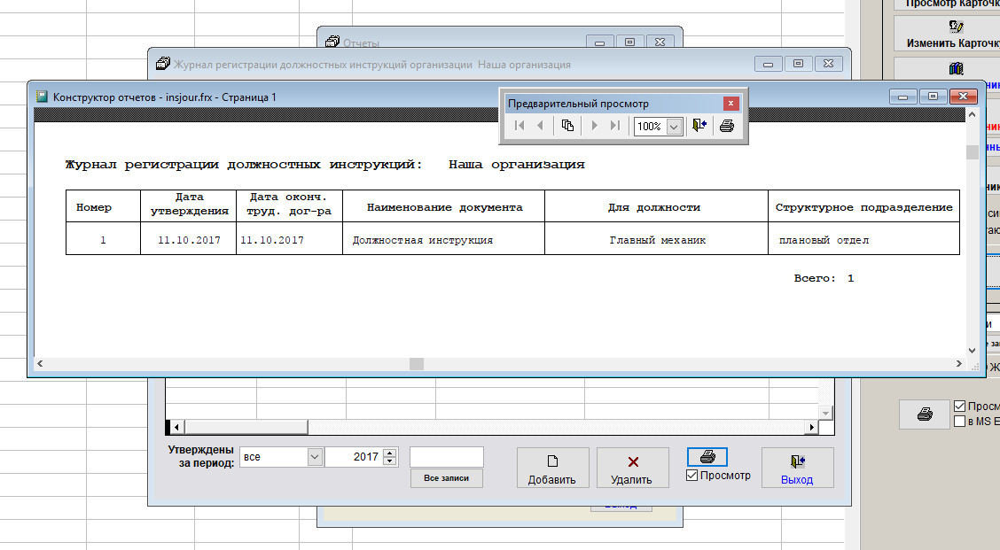Как распечатать журнал регистрации должностных инструкций