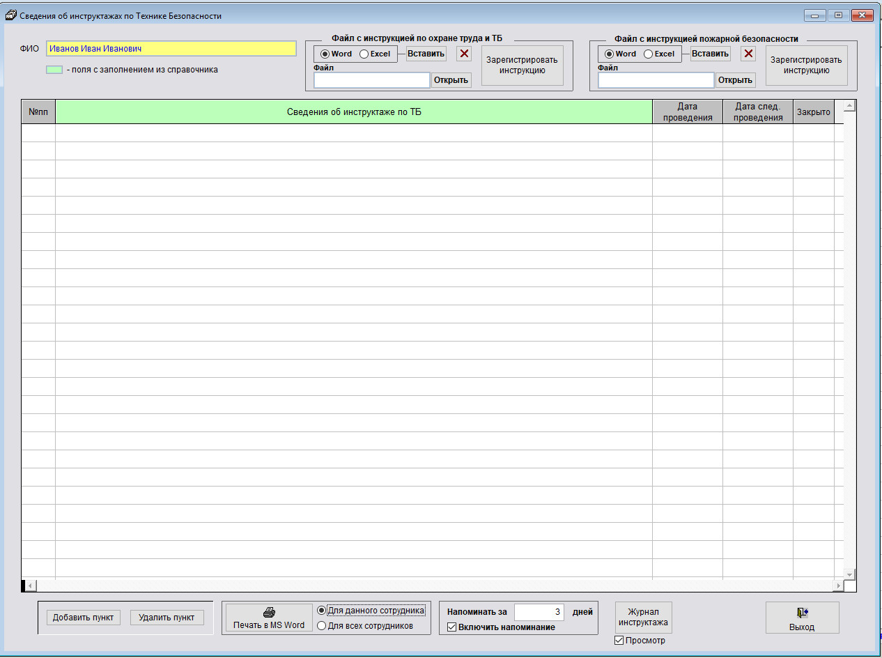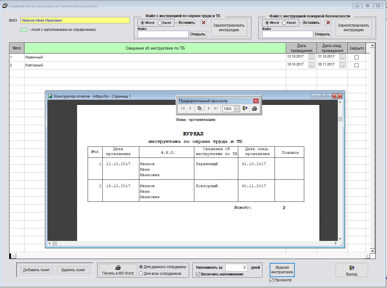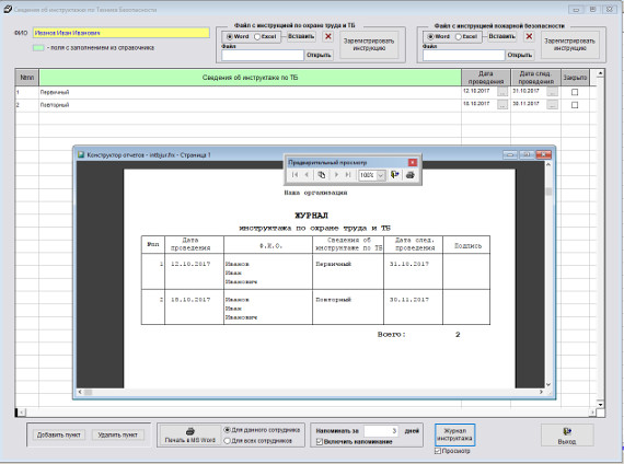 Как распечатать журнал инструктажей по технике безопасности