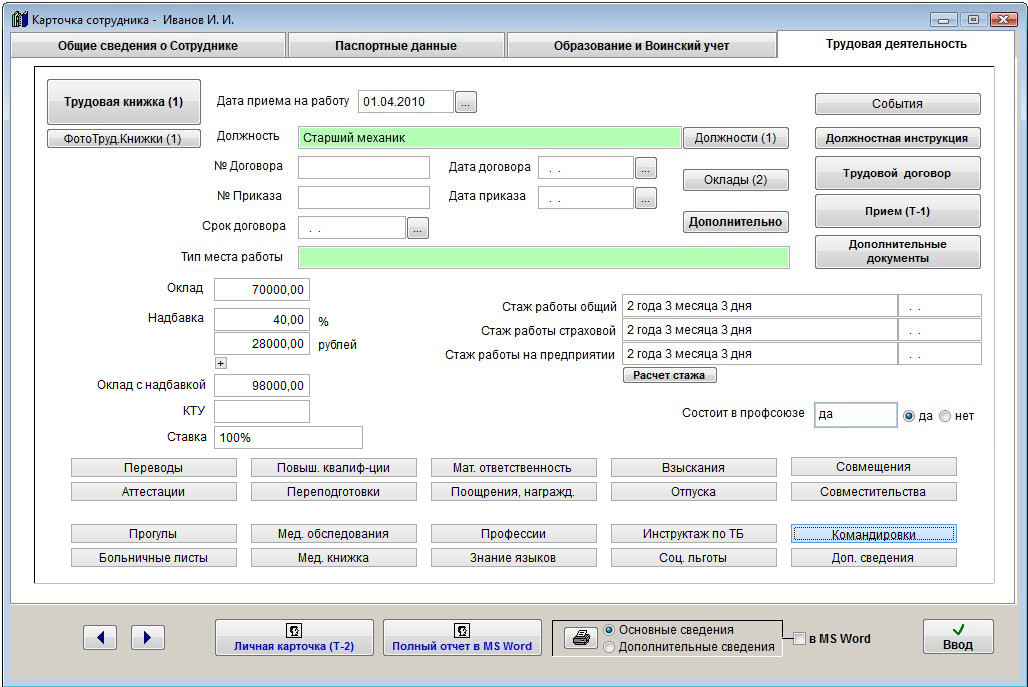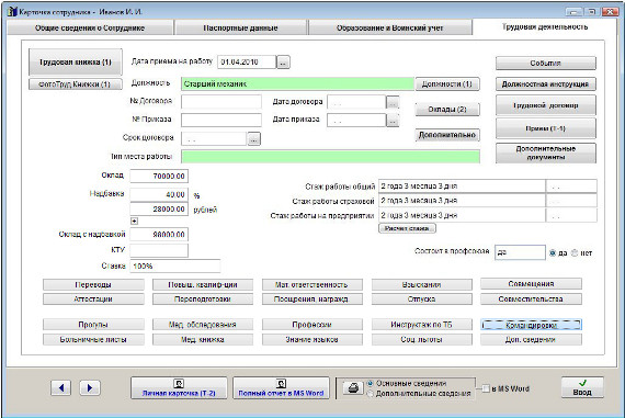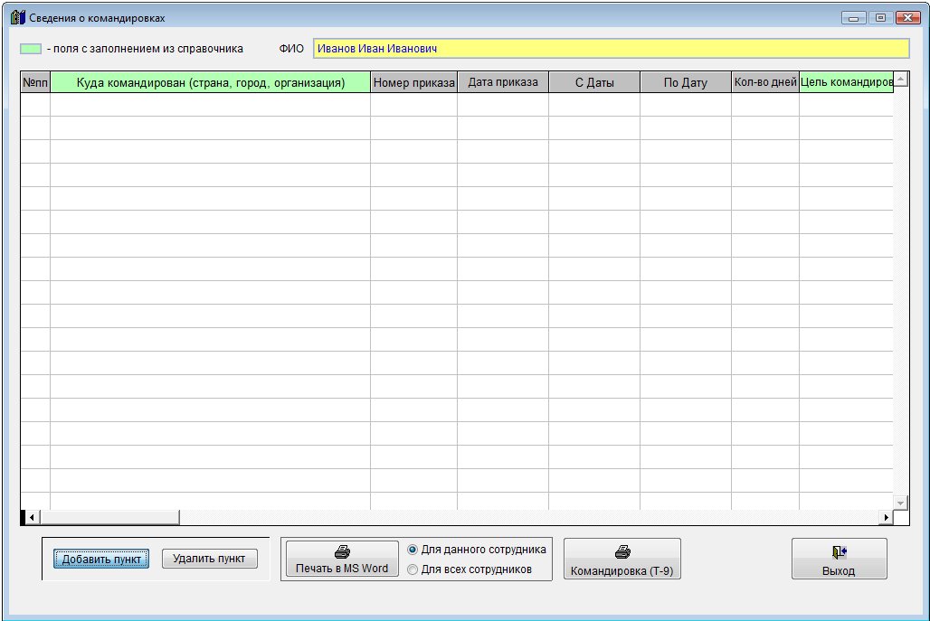 Если установлена опция "Для данного сотрудника", то в MS Word (OO Writer) , будет выведена информация только по данному сотруднику.