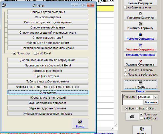 Для этого в журнале сотрудников нажмите кнопку Отчеты.