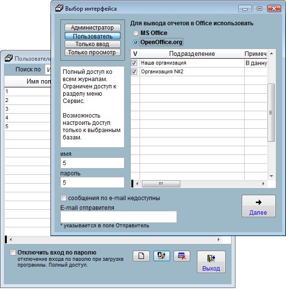 при совместной работе имеется возможность индивидуальной настройки для каждого пользователя программы, с каким пакетом офиса он будет работать, с MS Office или OpenOffice.